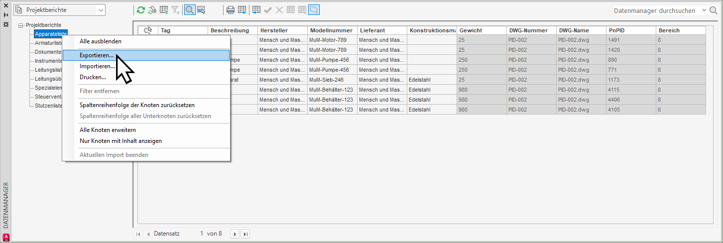 AutoCAD Plant3D: Datenmanager-Export formatieren