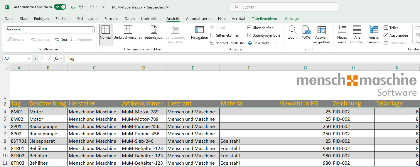 Anschließend kannst Du Zeilen und Spalten (etwa PnPID) ausblenden, eine neue Zeile für die Überschrift hinzufügen, ein Firmen-Logo als Bild einfügen.