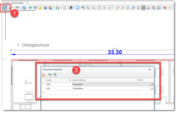 Pro Messblatt definieren Sie einfach eigene Parameter. Zum Beispiel eine Geschosshöhe oder Wandhöhe pro Geschoss. Sie tragen dann die Wandhöhe nicht bei jedem Wand Typ separat ein, sondern einmal pro Messblatt. Bei Änderungen geht es dann sehr schnell, es muss nur ein Wert geändert werden und alle Berechnungen sind aktuell.