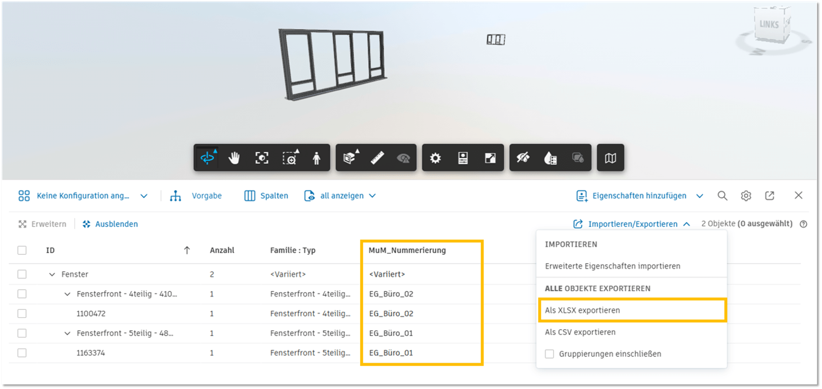 Für die Projektarbeit verfolgen wir in der Planung den Ansatz, auch die Projektinformationen am 3D-Modell abzubilden. Hier ermöglichen wir diese Tätigkeit mit dem BIM Booster der Mensch und Maschine. Neben einem Export haben wir im BIM Booster auch den Weg eines Imports abgebildet. Daher ist unsere Exportierte und ggf. in Teilen optimierte Excel-Liste die Grundlage für den Import. Der Import selbst wird über 3-Klicks erledigt, von einem zeitlichen Aufwand kann man also nicht sprechen.