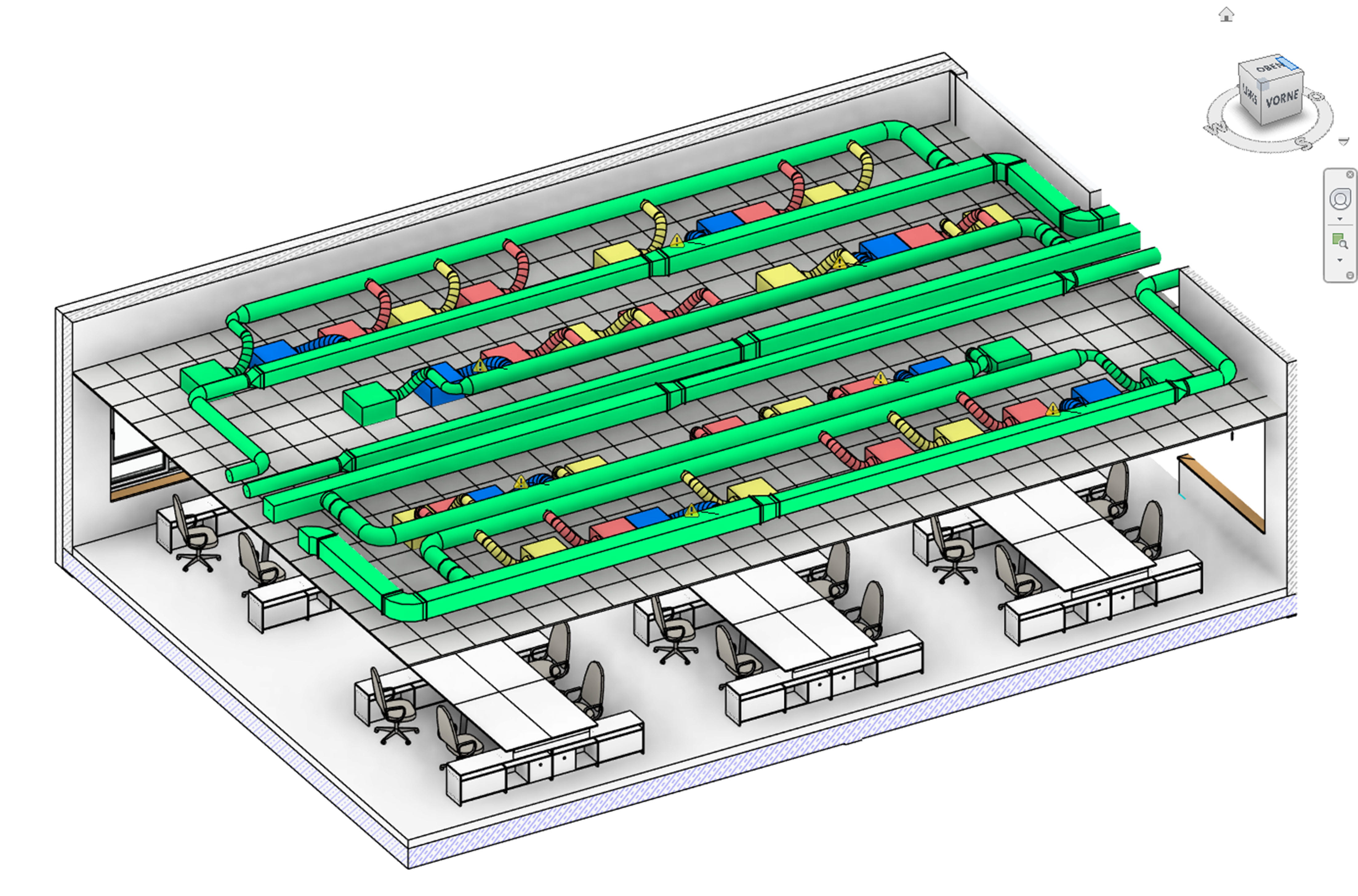 Neubau-Elemente sind Bauteile, die im Zielzustand des Projekts vorhanden sein sollen – z. B. neue Raumstrukturen, Tragkonstruktionen, Verteilerschränke, Kanalsysteme, Rohrnetze oder Kabeltrassen. Sie sind in Revit sauber von Bestands- und Abbruchelementen getrennt, was insbesondere für Mengenermittlung und IFC-Export entscheidend ist.