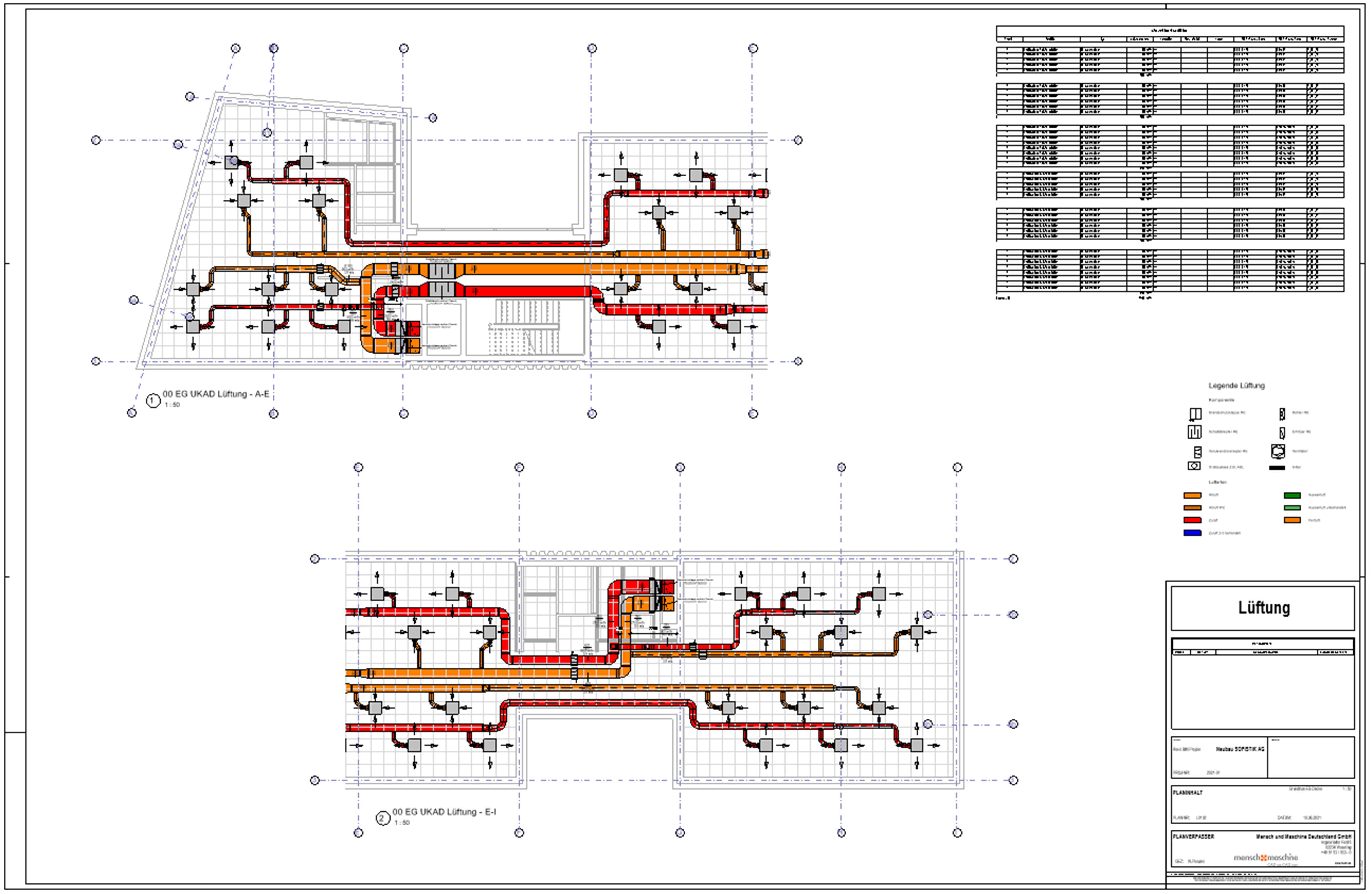 Luftauslässe gehören zu den typischen Bauteilen im Revit-MEP-Workflow. Sie werden in der Regel nach Größe, Volumenstrom, Nutzungsbereich, Montagehöhe und Systemzuordnung ausgewertet. Mit „Nach Plan filtern“ kann eine solche Liste voll automatisch genau auf die Auslässe beschränkt werden, die im jeweiligen Plan sichtbar sind – etwa ein Grundriss Lüftung pro Geschoss.