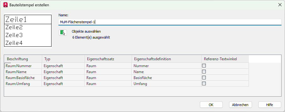 Abbildung 3: AutoCAD Architecture - Bauteilstempel aus Text