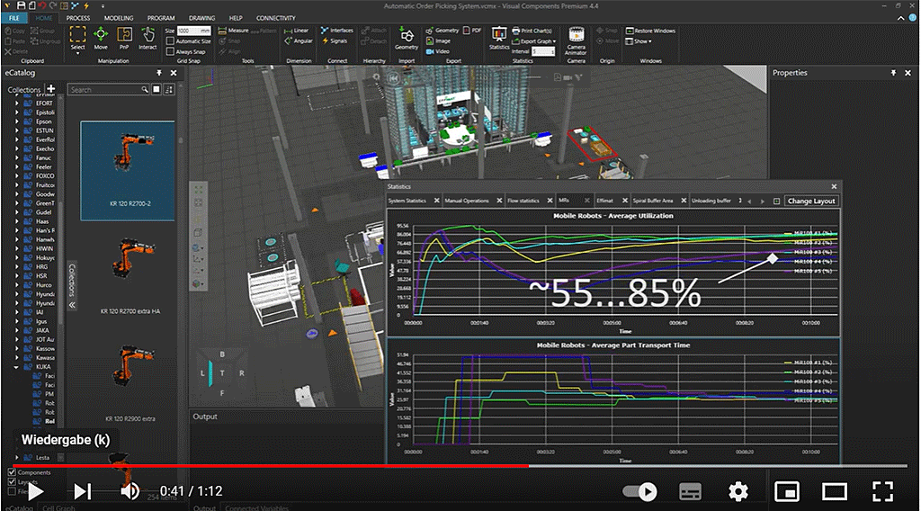 Mobile Roboter spielen in der modernen Produktion und Logistik eine immer größer werdende Rolle. Durch das Einbeziehen in die Simulation optimieren Sie Transportwege und Logistikprozesse.