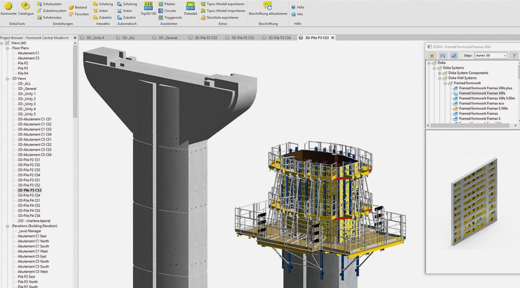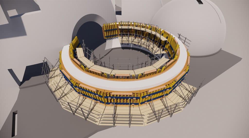 Wer BIM richtig nutze, sagt Richard Korak, erhalte eine Datendurchgängigkeit, die zu erheblichen Zeit- und Sicherheitsgewinnen führt: Aus einem 3D-Modell lassen sich jederzeit 2D-Pläne für Baustellen oder Materiallisten für den Einkauf ableiten. Änderungen im Modell werden unmittelbar nachgeführt. Ganz neue Möglichkeiten ergeben sich durch Visualisierung und Simulation. Visualisierungen helfen dem Kunden, die vom Schalungsspezialisten erarbeiteten Vorschläge zu verstehen, und sie helfen den Technikern, ihre eigenen Lösungen visuell zu überprüfen: Kollisionen von Schalungsteilen und Bauwerk oder mehrerer Schalungsteile lassen sich so im Vorfeld ermitteln und vermeiden. Prozesse auf der Baustelle und vor allem die Vorhaltemengen der Schalungsteile können dank der Simulationsfunktionen durchgespielt und optimiert werden.