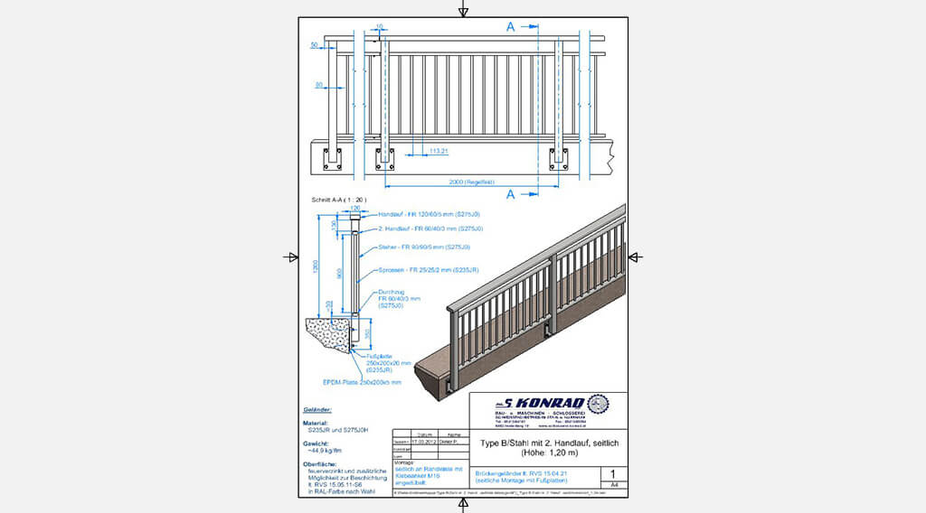 20-köpfigen Teams der Schlosserei sein: Brückengeländer aller Art.